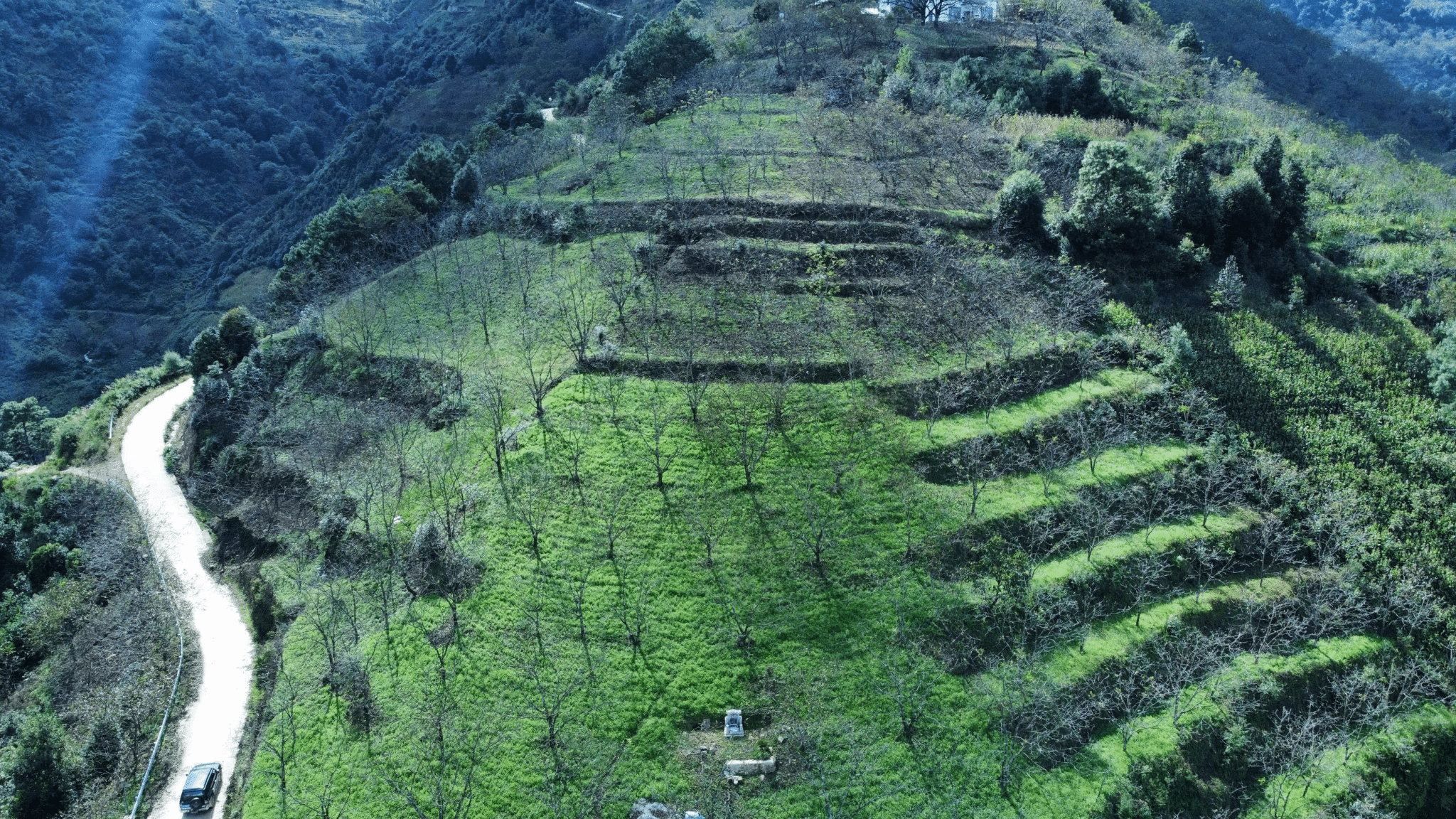 春日暖阳下,地勘院克普公司承建的漾濞县林下经济草原生态修复项目,昔日的荒坡已蝶变为层峦叠翠的生态梯田。我们深入践行国土绿化使命,以“坡改梯”为基础、以林木种植为核心,将地质治理与生态培育深度融合。蜿蜒的道路串联起成片新绿,错落的梯田牢牢锁住水土,既构建起稳固的山地生态屏障,又孕育着林下经济的发展生机。项目以精准勘察为支撑、以科学修复为路径,生动彰显了中材地勘院在生态保护与修复领域的责任与实力。