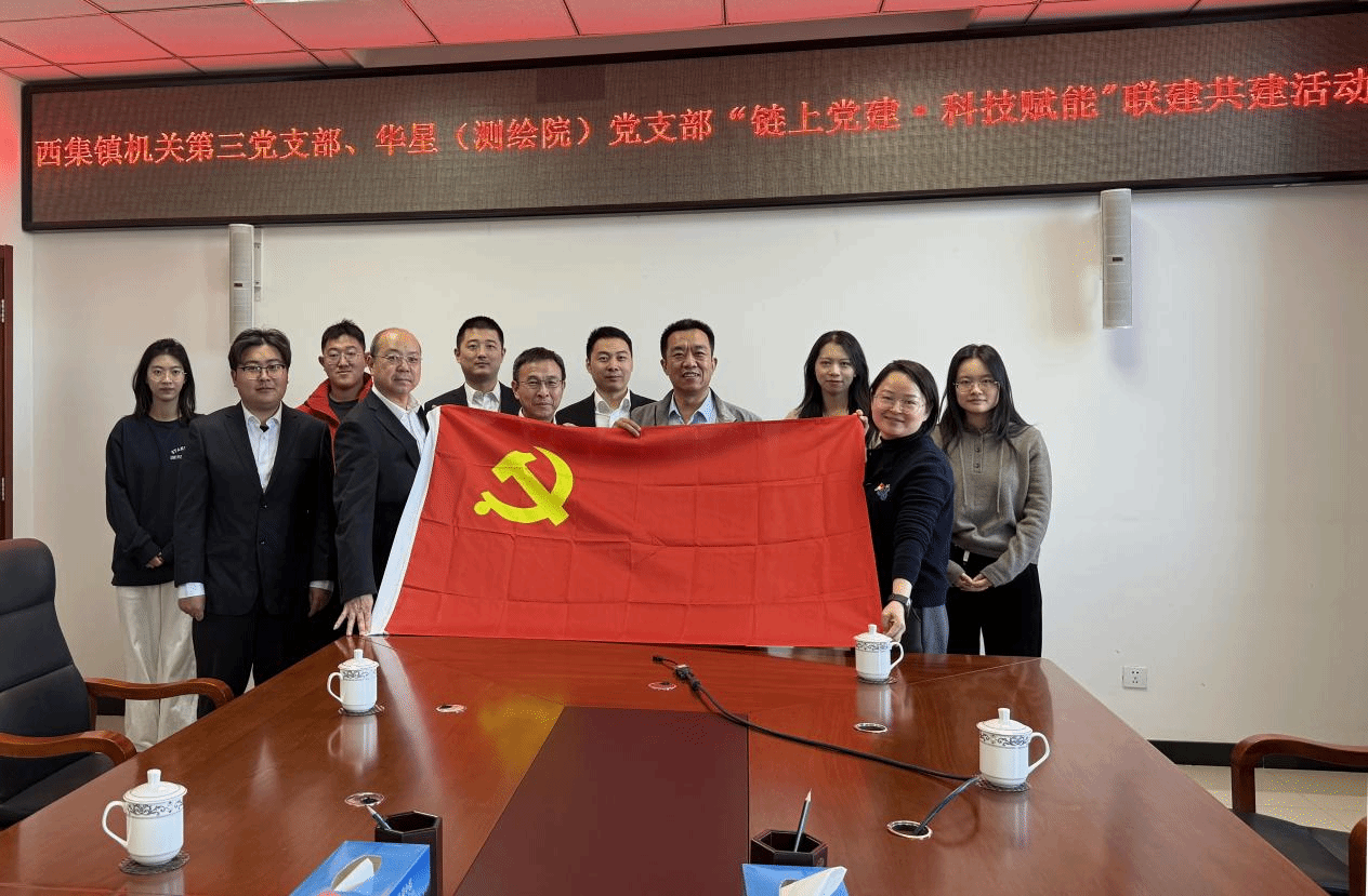 为强化党建引领,推动党建与业务深度融合,近日,华星(测绘院)党支部与通州区西集镇机关第三党支部联合开展“链上党建·科技赋能”联建共建活动。双方以党建为纽带,通过“交流+协同”模式凝聚政企合力,助力西集镇城乡建设数字化转型与升级。