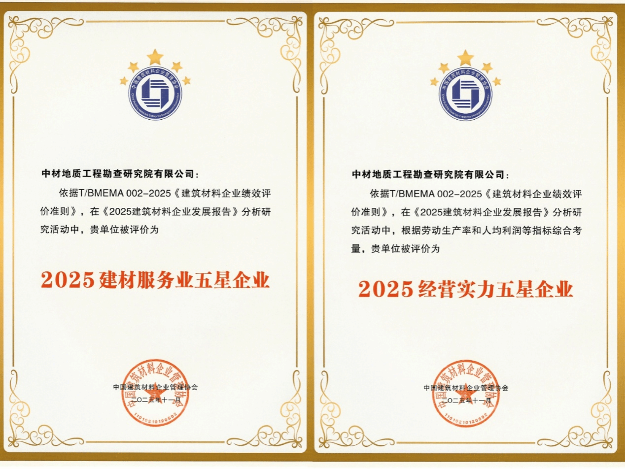 喜讯!中材地勘院荣获“2025年建材服务业和经营实力双五星企业”